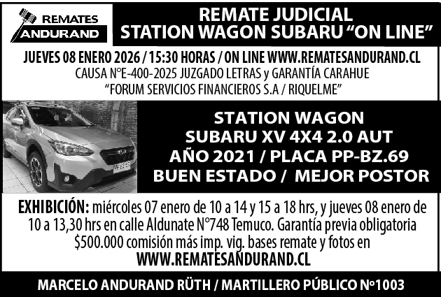 REMATE JUDICIAL SW SUBARU XV 100% ON LINE