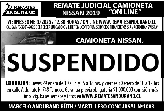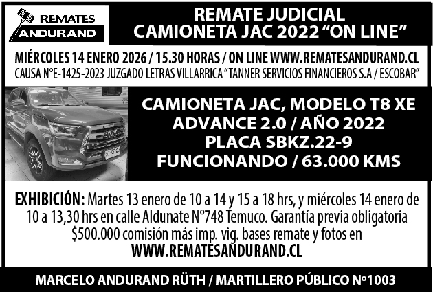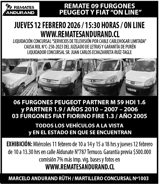 REMATE VEHICULOS, CAMIONETAS, EQUIPAMIENTO LABORATORIO, MOBILIARIO HOGAR, TRUCHAS CONGELADAS 100% ON LINE