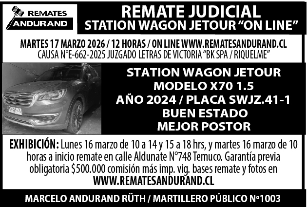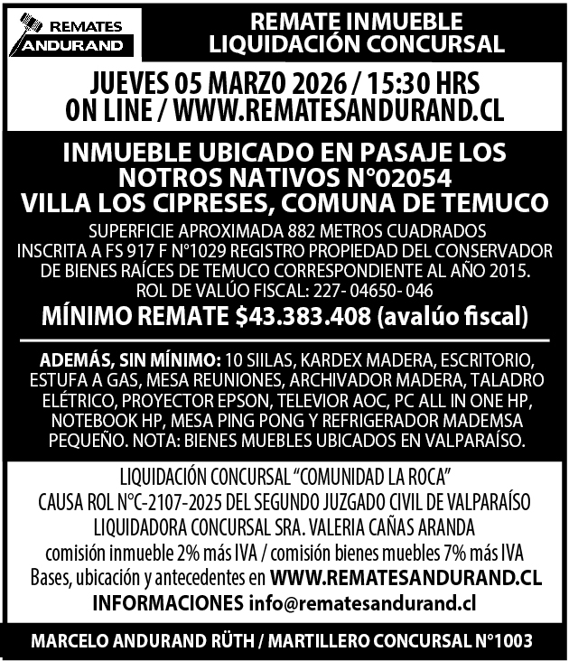 REMATE DERECHOS INMUEBLE EN TEMUCO