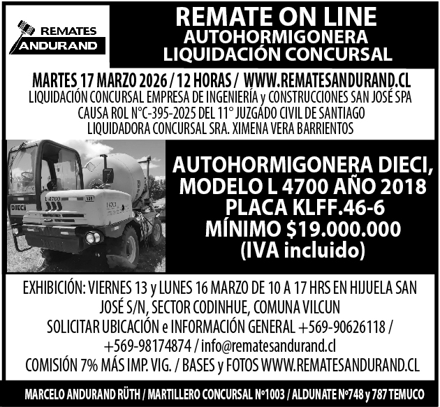 REMATE AUTOHORMIGONERA DIECI, SW JETOUR 100% ON LINE