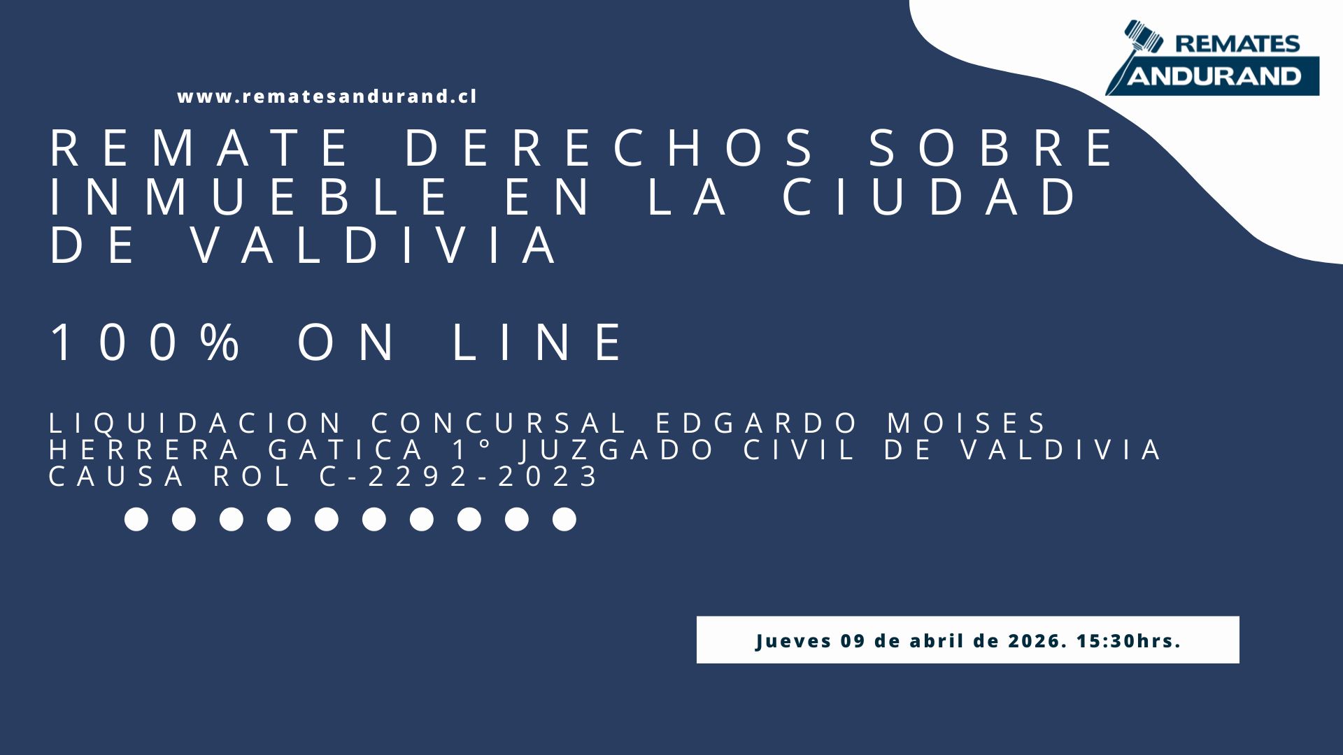REMATE DERECHOS SOBRE INMUEBLE EN LA CIUDAD DE VALDIVIA