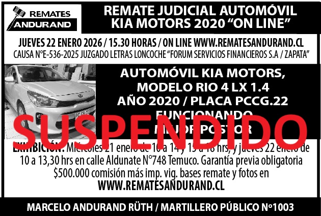 REMATE PRESENCIAL KIA RIO 5, MINIEXCAVADORA, SW Y MAQUINARIA