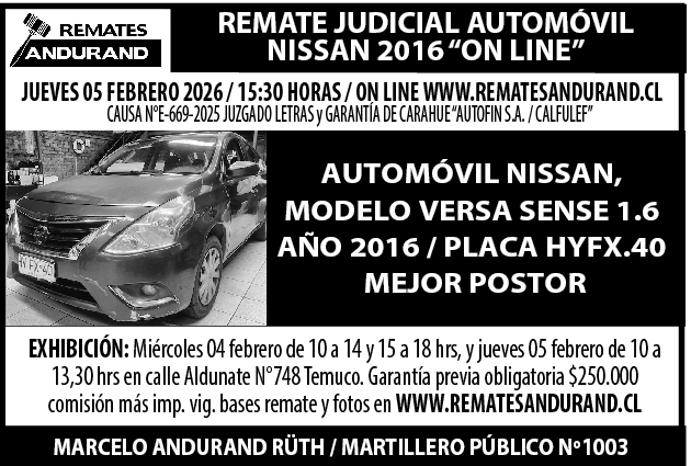 REMATE DERECHOS INMUEBLE EN TEMUCO, 100% ON LINE